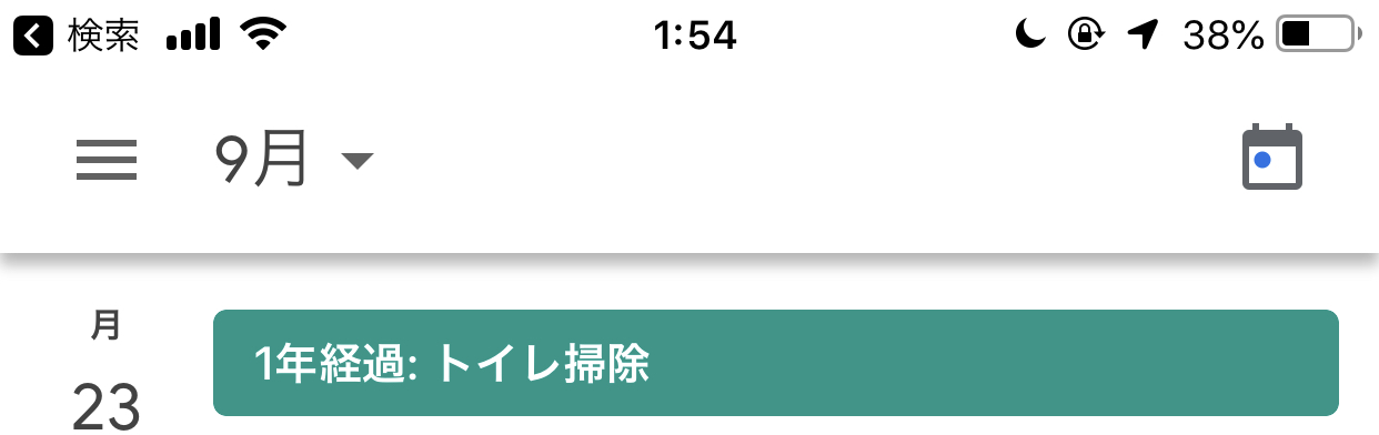 "1年経過: トイレ掃除"といった内容のカレンダーイベントを作成するのが目標。