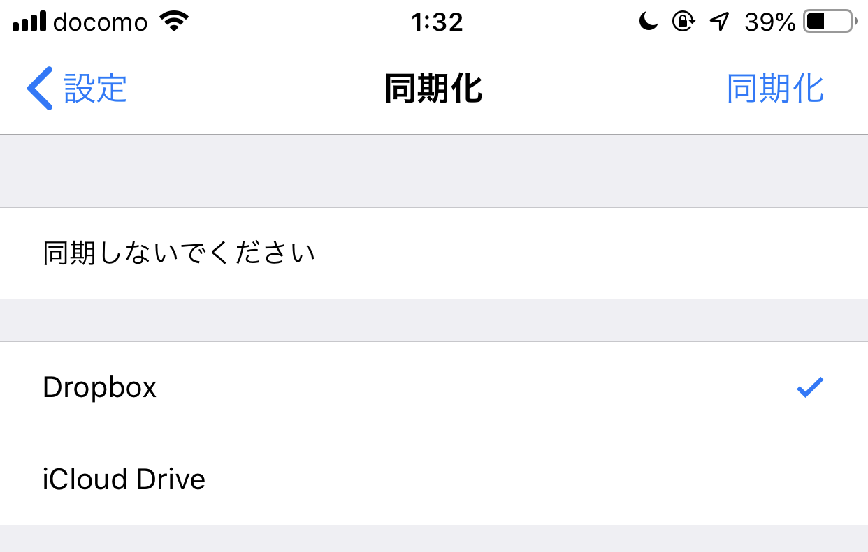 同期化の設定を有効にして、Dropboxに保存されるファイルをカレンダーの登録に利用する。